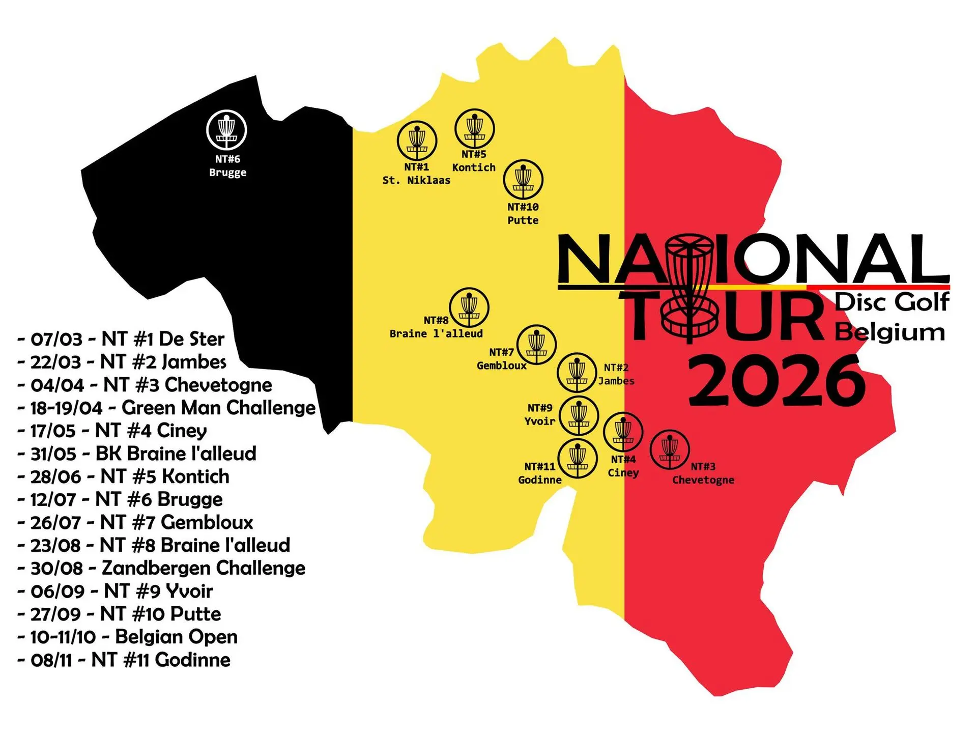 In addition to the NT events, the calendar is reinforced by some of the most important tournaments in Belgian disc golf history.