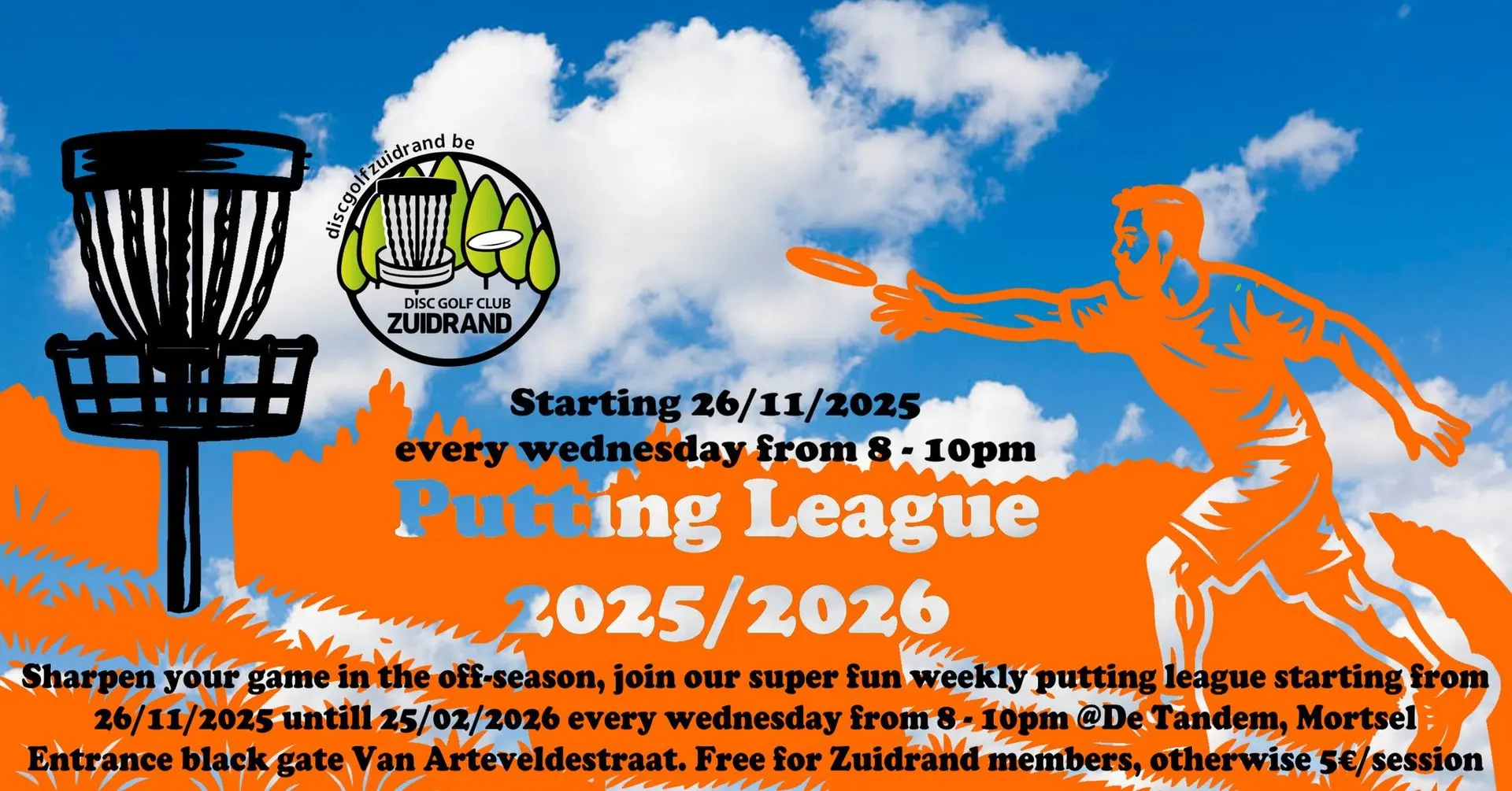 From November 26th, 2025 to February 25th, 2026, we’ll be gathering every Wednesday evening from 20:00 to 22:00 in the large gym hall of De Tandem Primary School in Mortsel. Just like every year, this will be a warm and welcoming place to keep your putting sharp during the darker months.